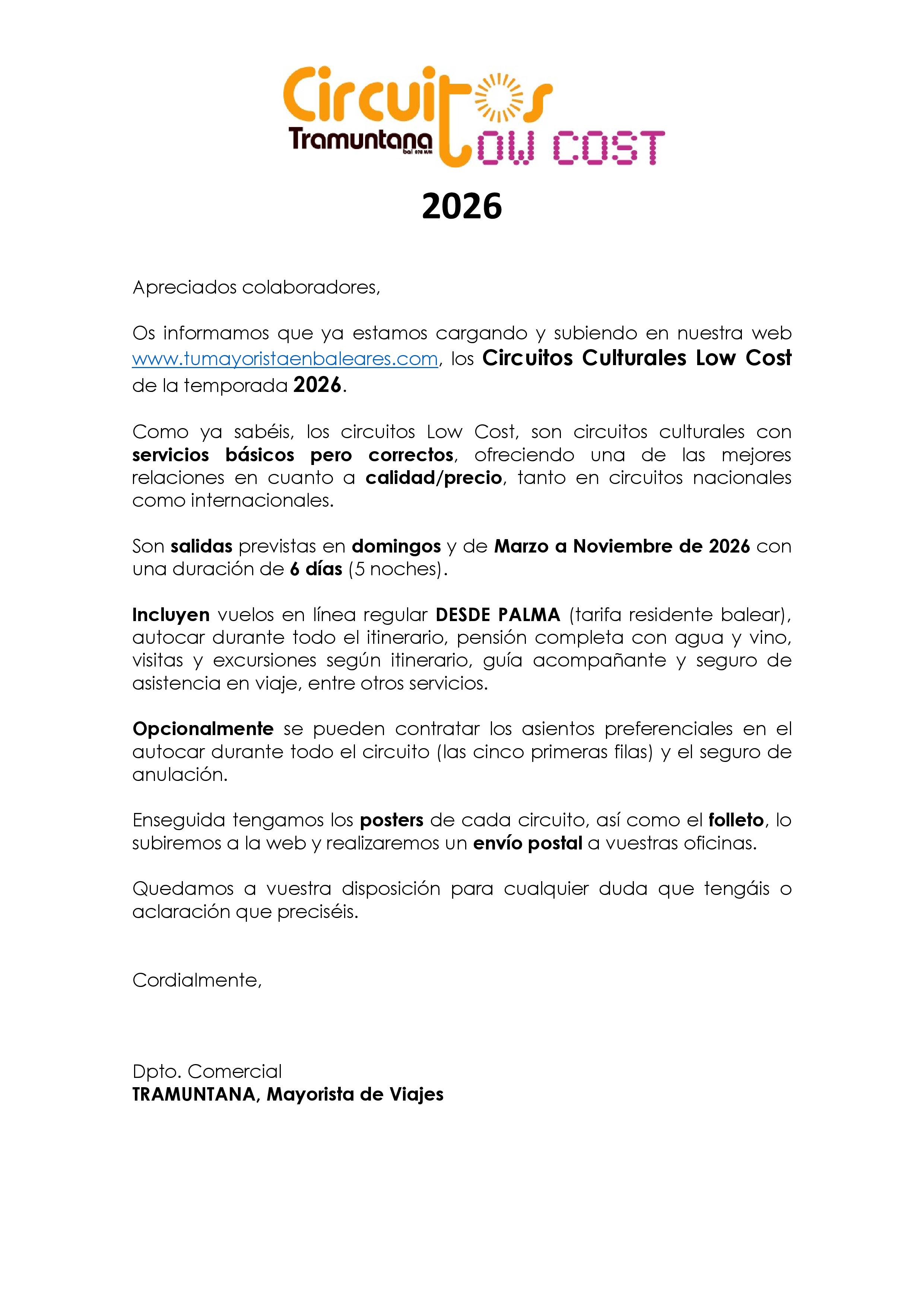 Circuitos LOW COST 2026 por España y Portugal · Salidas en vuelo regular desde Palma
