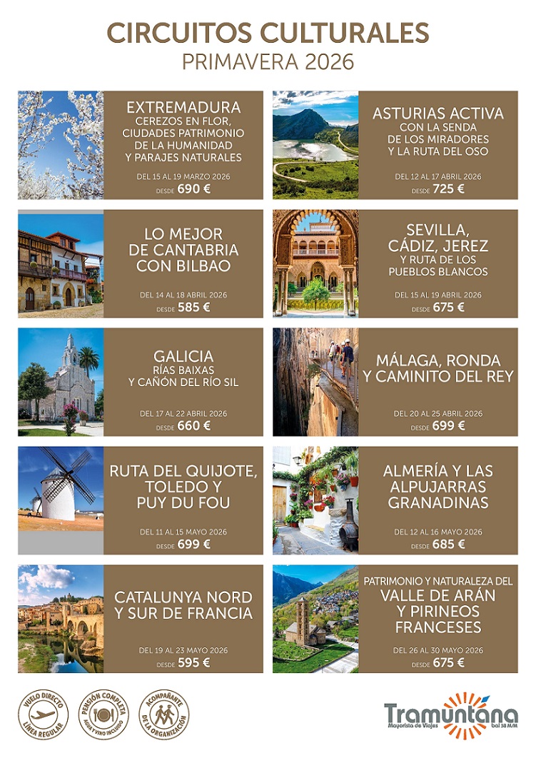 Circuitos EXCLUSIVOS Culturales Primavera · Salidas en grupo desde Palma