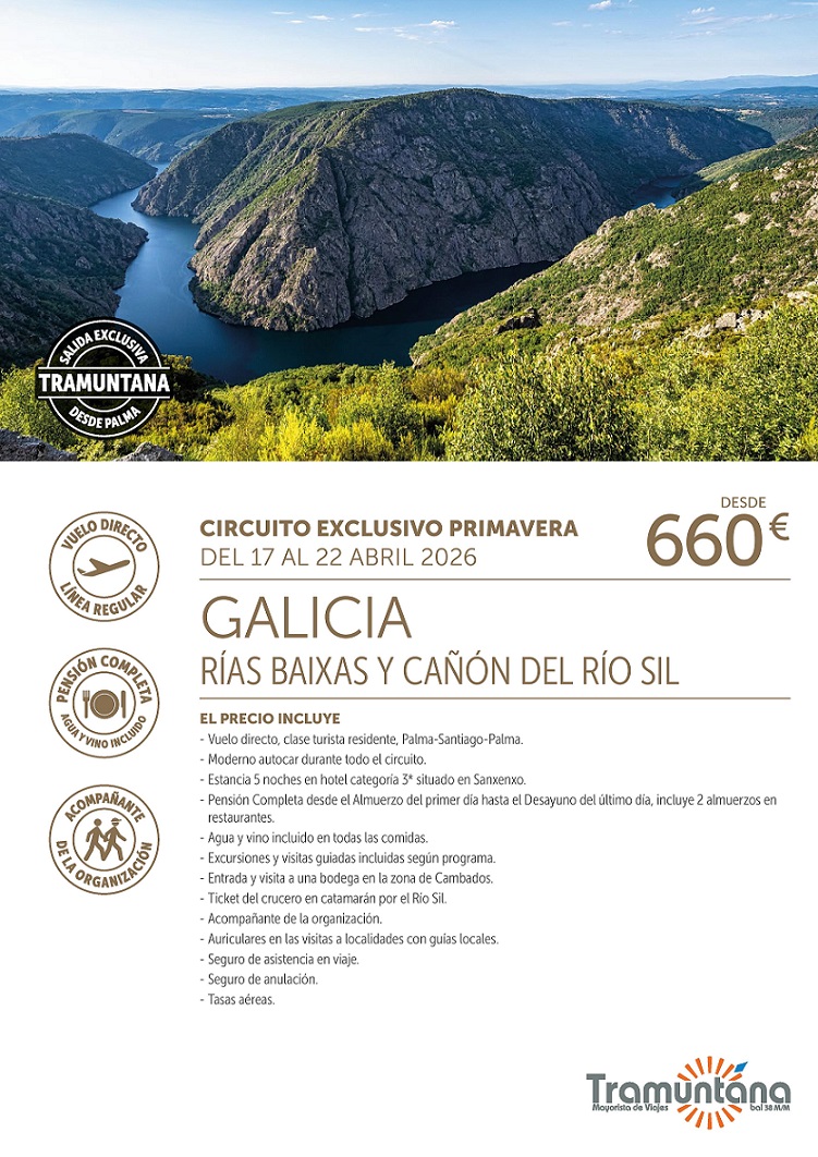 GALICIA, Rías Baixas y Cañón del Río Sil · Exclusivo Tramuntana · Salida en grupo desde Palma