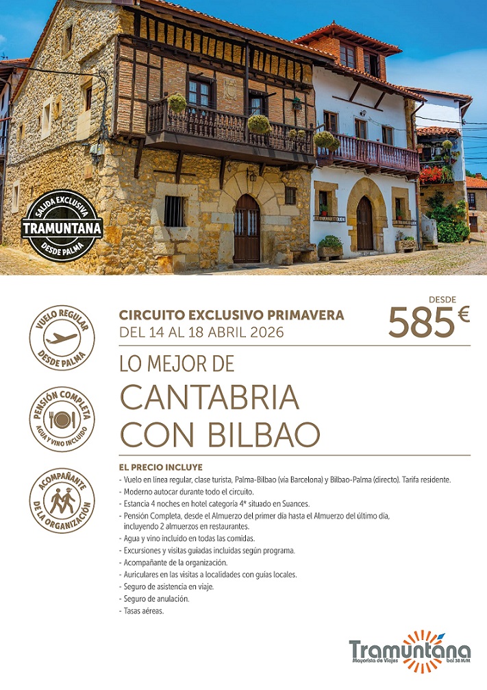¡¡ Salida GARANTIZADA !! · Lo mejor de CANTABRIA con Bilbao · Exclusivo TRAMUNTANA · Salida en grupo desde Palma